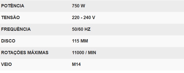 Esta rebarbadora TOTAL, em particular , usa discos de 115 mm e tem uma potência de 750W. Inclui uma chave para montagem e um guiador auxiliar para poder utilizar a ferramenta elétrica de forma segura e confortável, pois é ergonómica e anti deslizante.