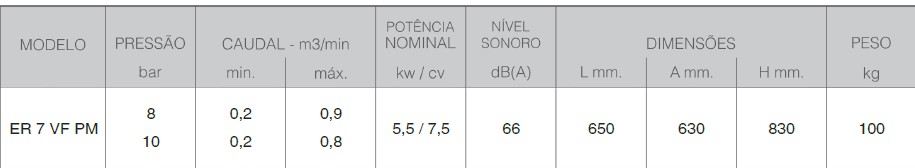 O Betico ER 7 VF PM é um compressor de parafuso compacto e eficiente, ideal para aplicações profissionais que exigem fiabilidade, economia de energia e funcionamento silencioso